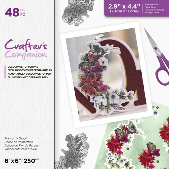 - (48) 6″x 6″ Sheet Decoupage Topper Pad – Poinsettia Delight