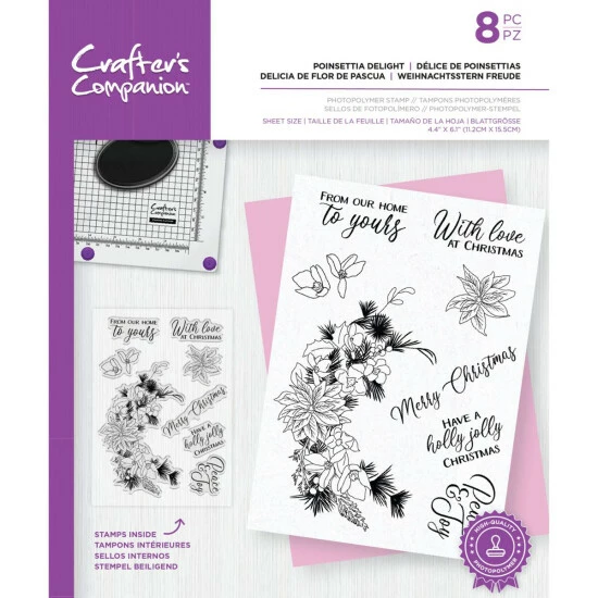 - 8-piece Clear Stamps; Poinsettia Delight, approx. 4.4″x 6.1″