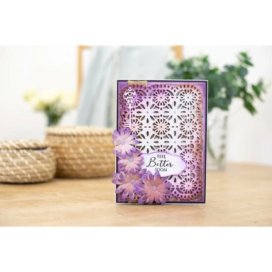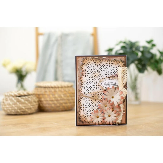 Replicate the delicate look of lace with this beautiful paneldie. Use it as a statement piece on your cards, as intricate panels on your scrapbooking layouts, for exquisite lanterns or cut into vellum for a parchment craft look. Think of the possibilities.