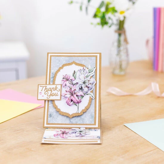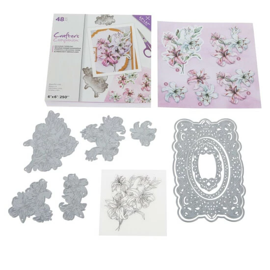 Think of the possibilities with this kit that includes paper. The deep-cut dies have been designed with stunning, intricate detailing, the decoupage page is heavy-weight card stock and your floral designs can be embellished further with extras, such as ribbons, gemsand flat-backed pearls (available separately) that areperfect for all occasions.