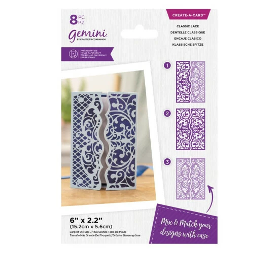 - 8-piece Gemini Metal Die CAD Decorative Gatefold – Classic Lace; approx. 6″L x 2.2″W