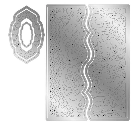 Let’s get creative with this gatefold die.The set includes two perfectly symmetrical die panels that can be used together or independently to create different effects. For example, use one of the dies to cut one side of the gatefold and then rotate it 180 degrees to cut the other side of the gatefold or use the two dies together for a different look. Use the layering dies (included in the set) together with your chosen sentiment or embellishment to complete the design. Think of the possibilities.
