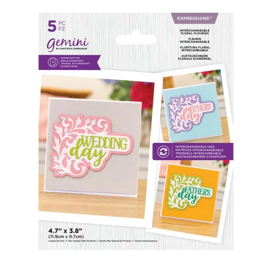 - 5-piece Gemini Decorative Trio Dies – Interchangeable Floral Flourish; approx. 4.7″L x 3.8″W