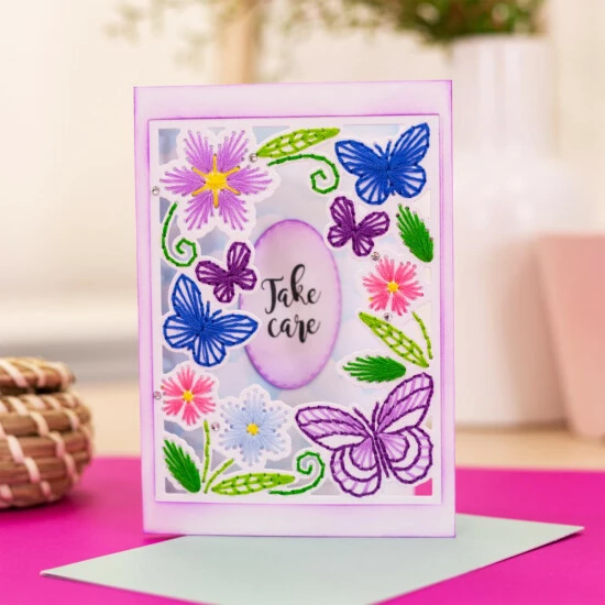 Make your cards and gifts stand out from the crowd. Use these dies to createan embroidery template on your card stock and simply embroider the design using your chosen colors of thread. It’s perfect for all occasions.