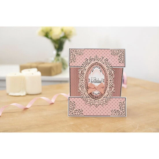 Perfect for all occasions, each set of three panel dies that can be used individually or together. The edges of each panel are beautifully decorated to create an air of opulence and elegance. Think of the possibilities.