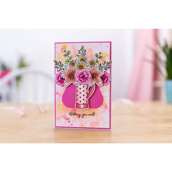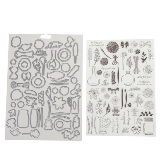 The included clear stamps and metal dies will help you create fabulousfloral arrangements for use in a variety of paper crafts.