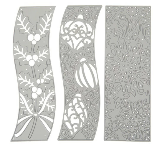 Create stunning designs with these intricate, cascading-style Christmas Centerpiece Create-A-Card dies. Experiment by placing acetate, glitter cards and more (not included)behind the die-cut panels to achieve a variety of effects.