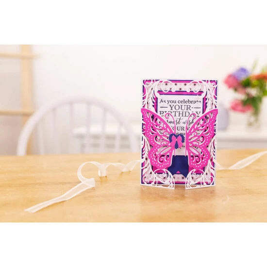 Make beautiful gatefold cards quickly and easilyusing these fabulous double-sided dies. Simply place the die between two pieces of card stock and pass through the die-cutting machine. The result is professional-looking die cuts on both pieces of card stock.