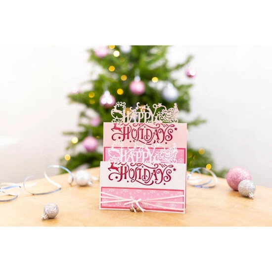 Theselarge,festive metal dies feature stunning sentiments with intricate cut and embossing details. Fabulous for creating wonderful Christmas cards, gifts and more.