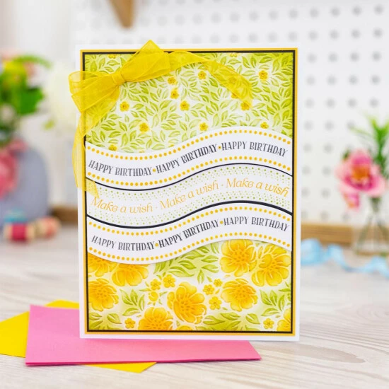 Create stunning cards with ease, using this embossing folder, stampand die set. The curved dies and sentiment stamps are interchangeable across all the designs in this collection. Perfect for all occasions.