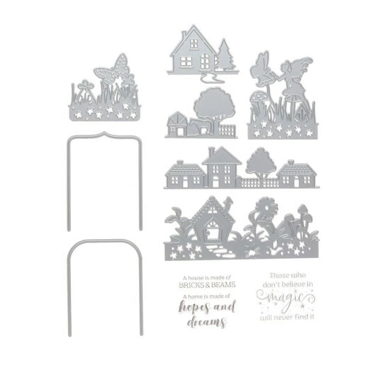 - 5-piece Gemini Stamp & Die – Village of Light; approx. 3.7″L x 2.8″W