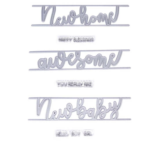 - Gemini Stamp and Die – Connecting New Baby, 4pc, approx. 6.2″ x 1.3″