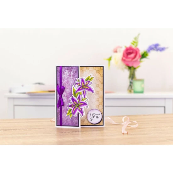 - 3-piece Gemini Stamp & Die – Luscious Lilies; approx. 4.8″x 1.75″