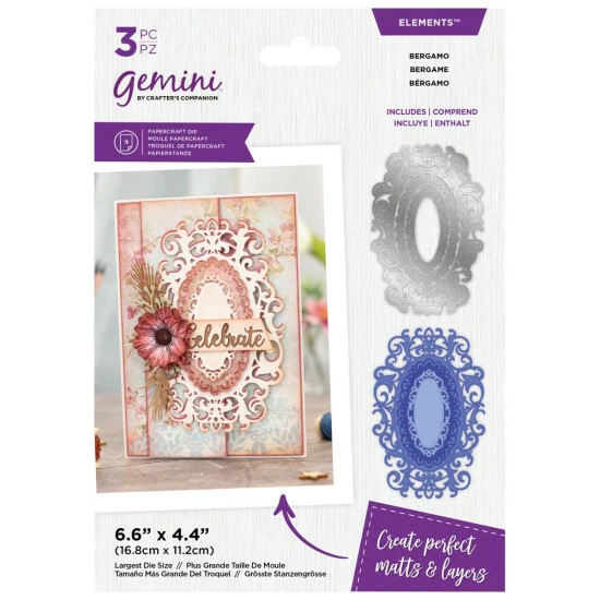 - 3-piece Gemini Metal Die Elements – Bergamo; approx. 6.6″x 4.4″