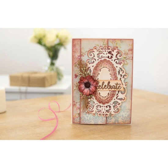 Create elegant and intricate matts and layers with this breathtakingly beautiful range of nesting dies. Each set contains three fabulous frames in increasing sizes that you can use either individually or matted together for spectacular results.