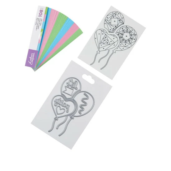 Create eye-catching birthday cards with this iris folding die and template set that includesthe main aperture die along with coordinating embellishment dies and a template on how to create the iris effect.