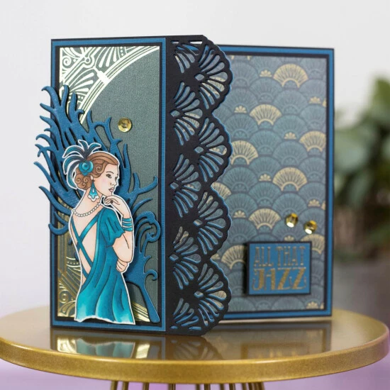 - 12″ x 12″ Roaring 20s paper pad; 24 double-sided pearlescent sheets; 6 designs
