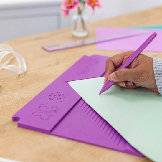 - Double-sided scoring board with metric and imperial measurements in increments of 1/8″ and 5mm – Handy size, perfect for the crafter on the go