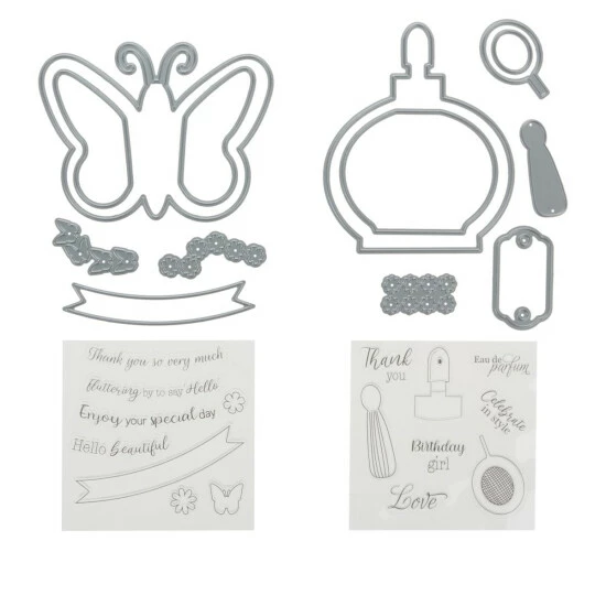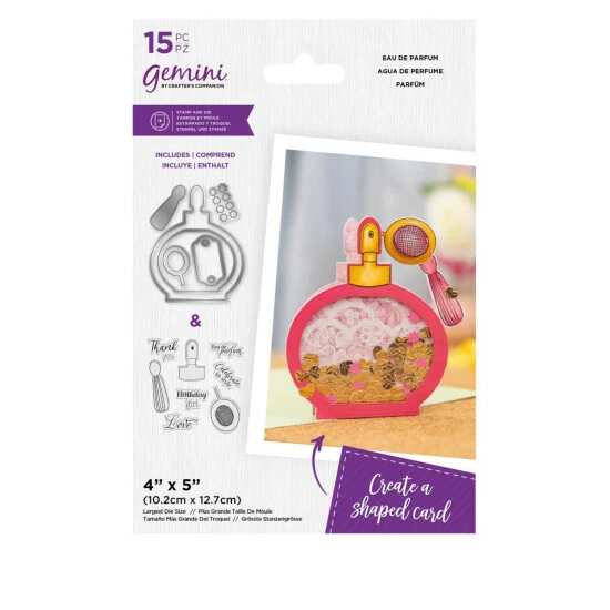 - 15-piece Gemini Stamp & Die Set – Eau De Parfum; approx. 4″ x 5″