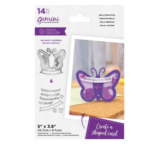 - 14-piece Gemini Stamp & Die Set – Hello Beautiful; approx. 5″ x 3.8″