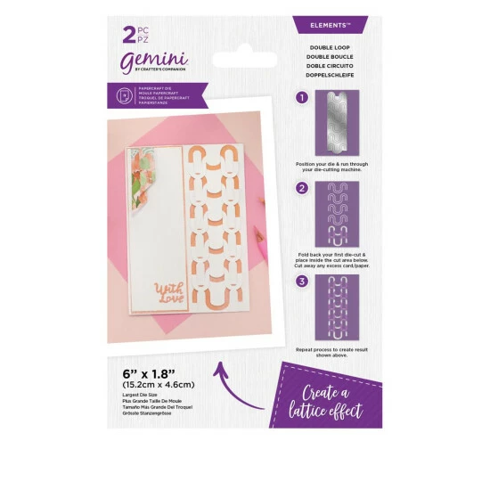 - 2-piece Gemini metal die elements; Double Loop; approx. 6″L x 1.8″W