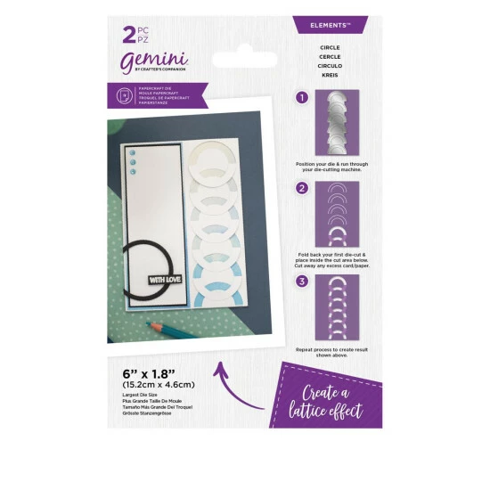 - 2-piece Gemini metal die elements; Circle; approx. 6″L x 1.8″W