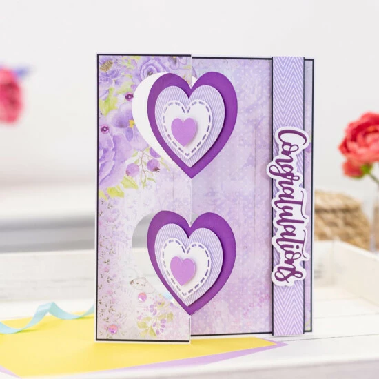 Create kinetic cards, with ease, using this setof swing card dies. Decorate the designs and add dimension using the additional layering dies (included in this set). It’s perfect for all occasions.