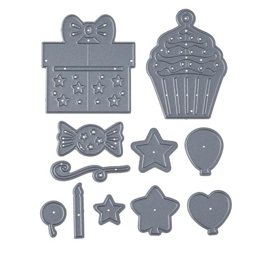 This set contains a fun selection of birthday and party-themed dies to create eye-catching projects. Mix and match with the other hanging ornament dies for show-stopping 3D results.